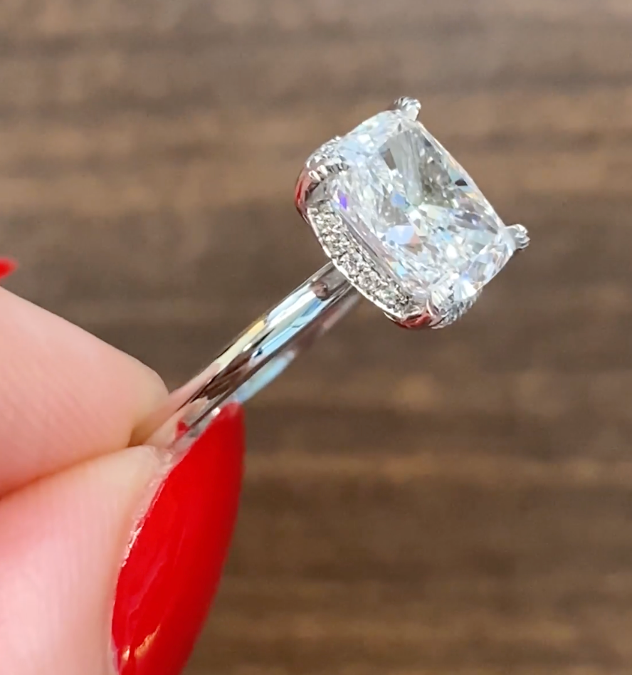 Design Details: Keep hidden halo, but design with smaller diamonds (same size as Isabella's)