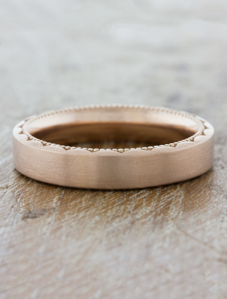4mm brushed wedding band with intricate metalwork