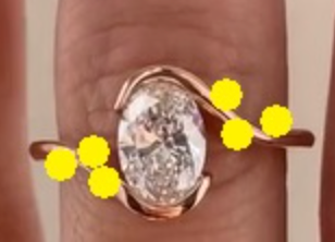 - add cluster of diamonds on either side of center stone (reference photo and Harmony as inspo)