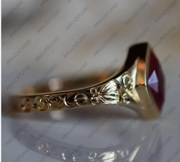 - engraved band in about 3.50mm and widens towards the stone