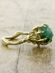 This version of the original Colette features a 1.80 carat natural emerald center stone in a beautiful rose-cut.  The intricate setting was handcrafted in 14k recycled yellow gold, adding richness and character to the vibrant green emerald.  Handmade in NYC.