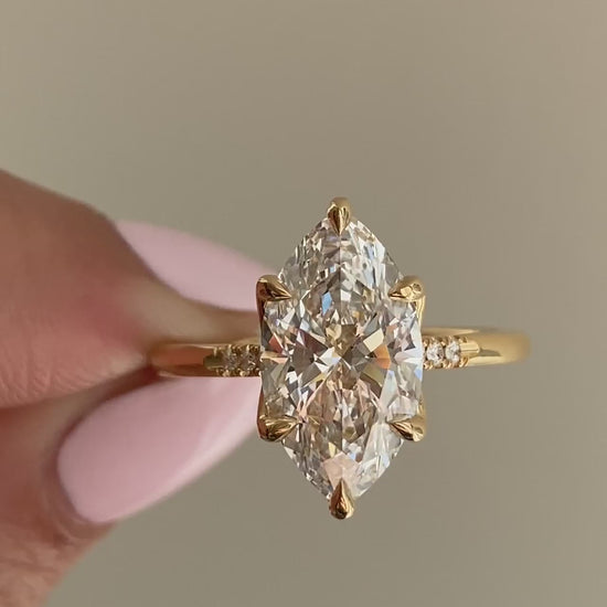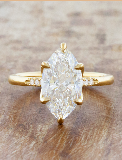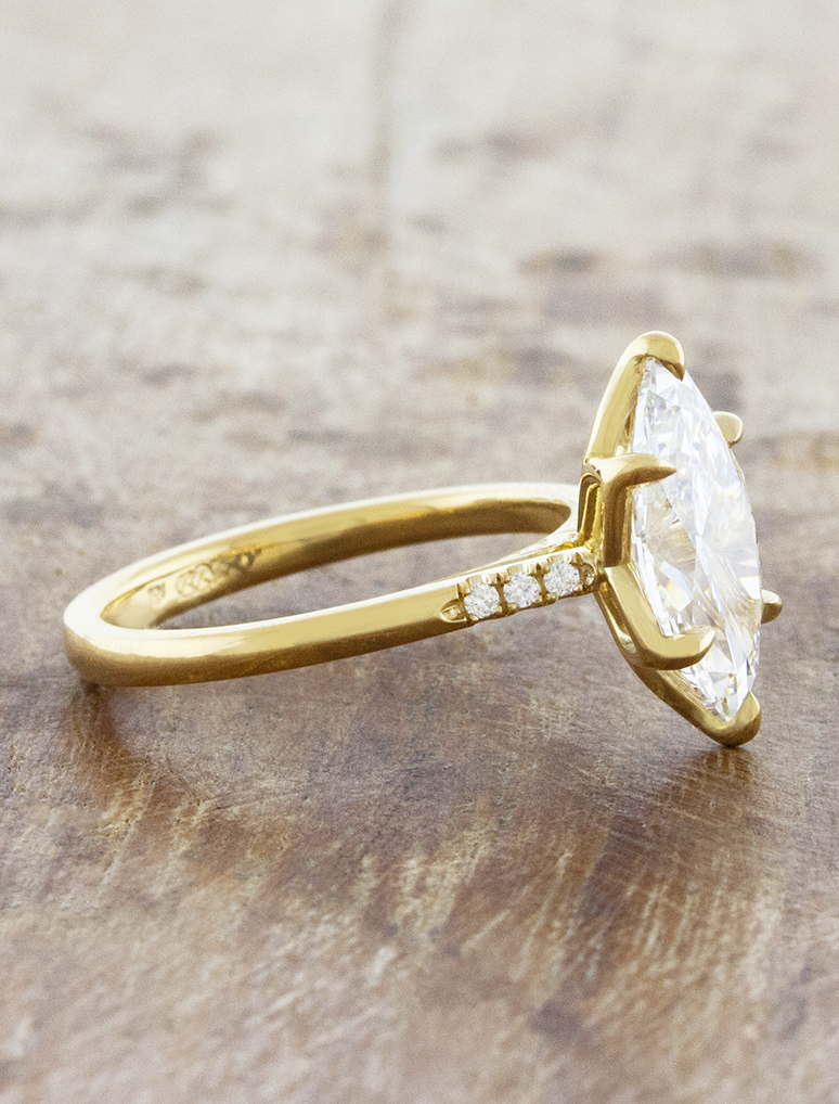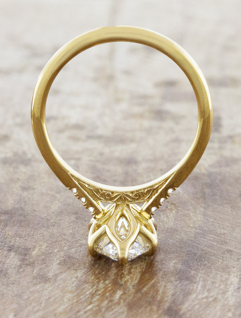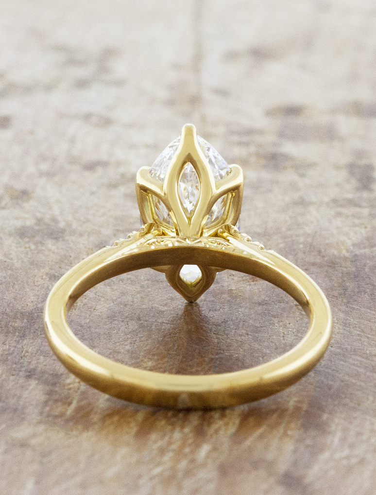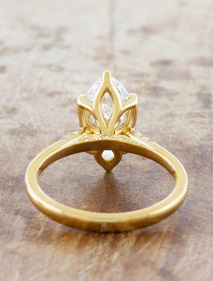 Tulip basket marquise solitaire with diamond & engraved accents