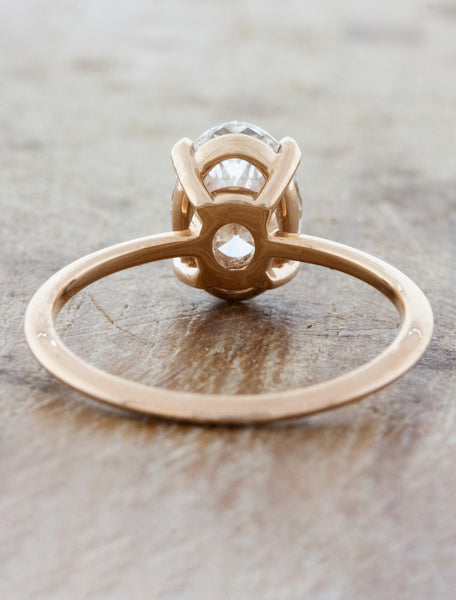 It is like a floating diamond ring.  Its thin, simple and a stone highlighter.  Florina gives the perfect minimalist look with a stunning GIA certified 1.84ct D VS1 lab grown oval diamond set on top of a 1.6mm wide 18k rose gold band.