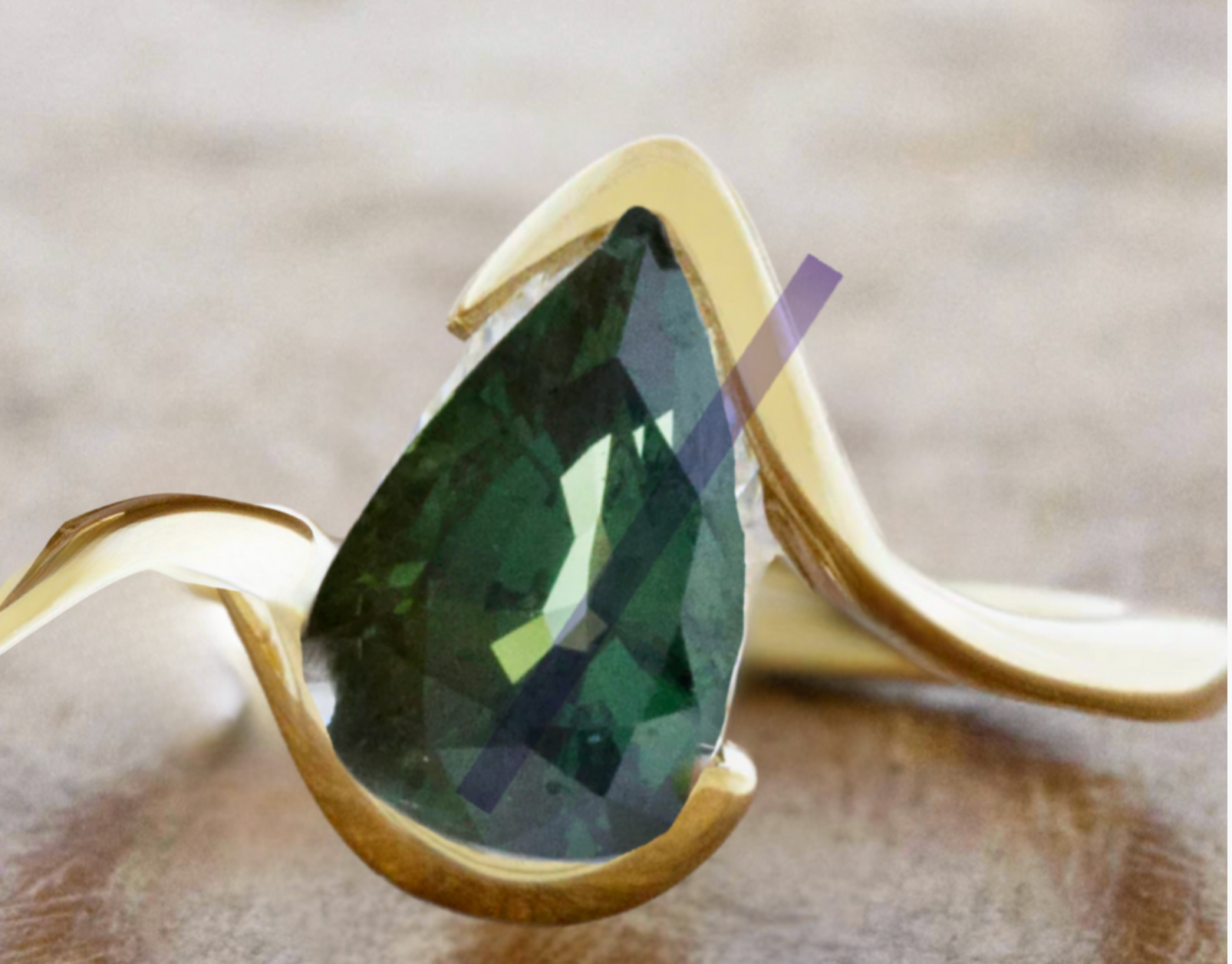 • Design with center stone angled to the right, see purple line for tilt reference.
