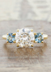 There is something so classic and elegant about a three stone ring. We sourced three outstanding examples of round lab grown diamonds for our client and secured them in a unique heart-shape basket that offer an unexpected, super - cute peek-a-boo treat.