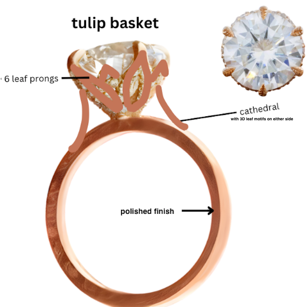• One 3D leaf motif on either side leading up to center stone (ref image attached)