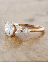 Jacqueline is an exquisite celebration of love and elegance. At her heart, this captivating engagement ring features a round cut diamond. On either side, three marquise accent diamonds bloom like petals in perfect harmony, creating a seamless flow of brilliance and beauty.