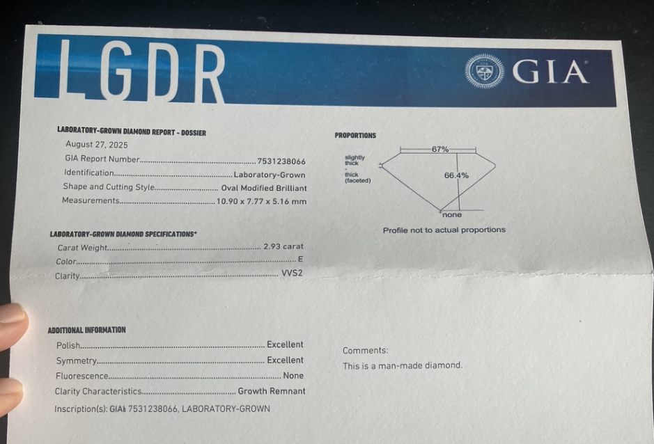 Center Stone type: Lab Grown Diamond