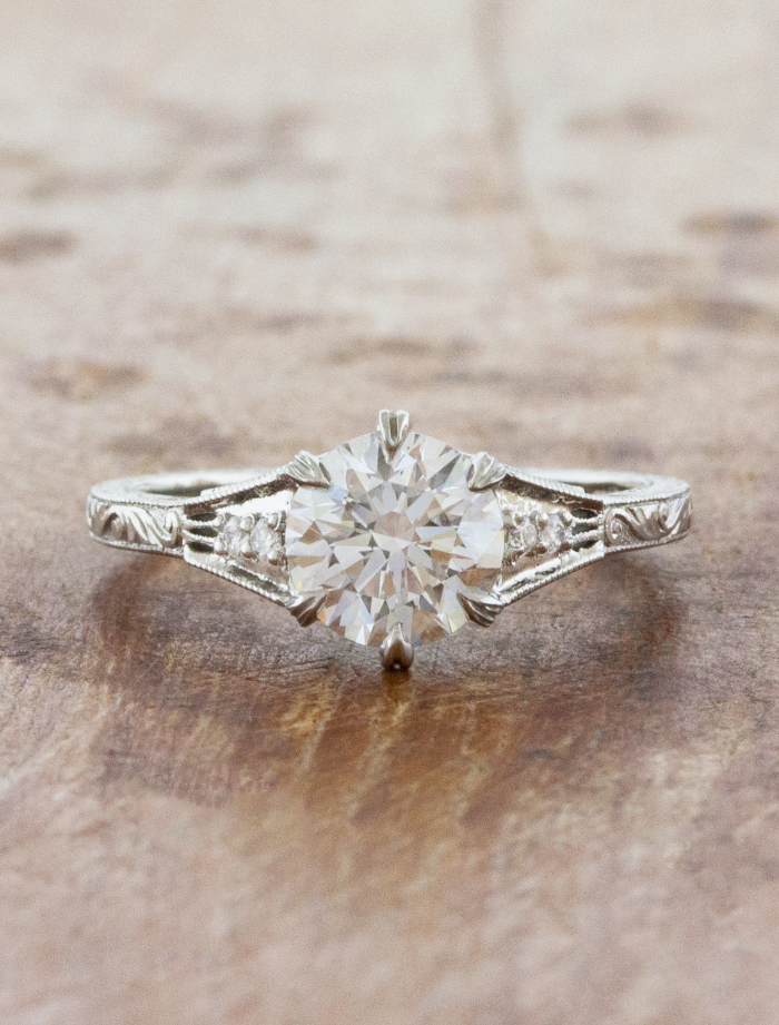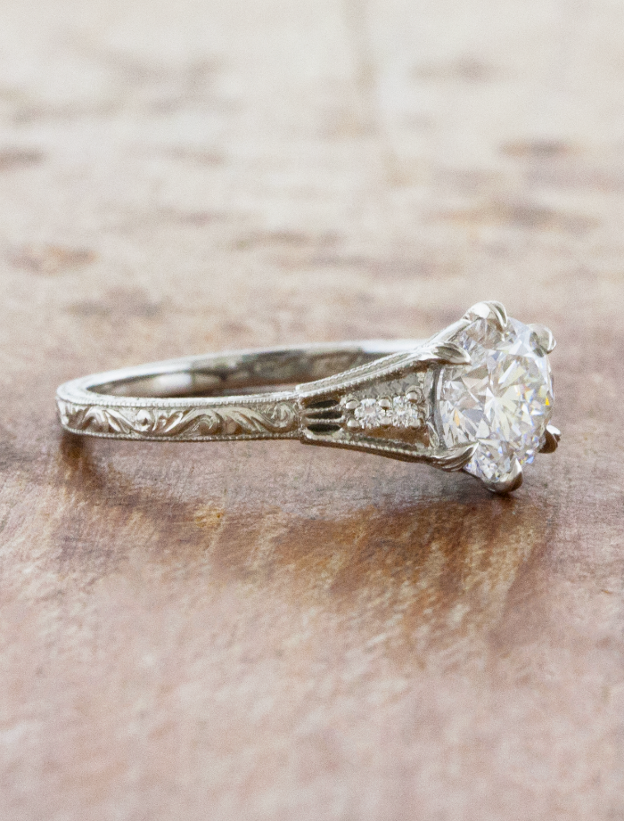 Vintage inspired hand-engraved engagement ring