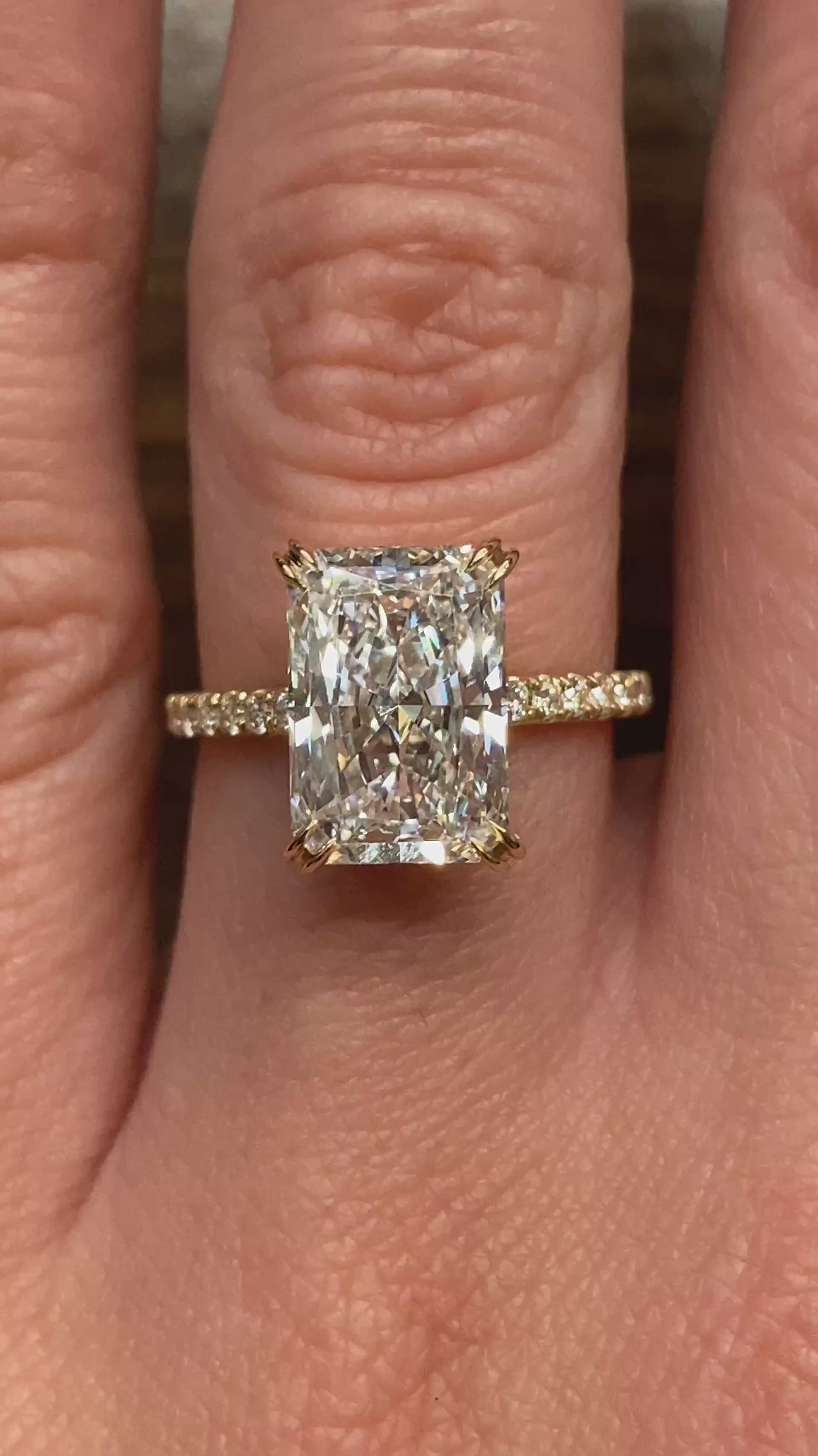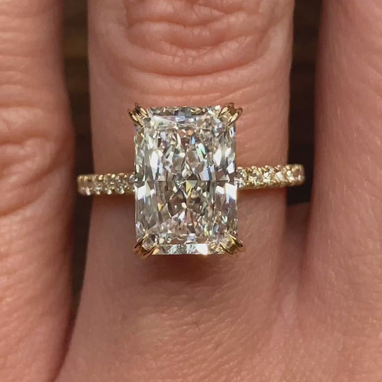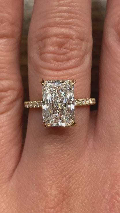 Radiant cut cathedral solitaire with hidden halo & surprise diamonds