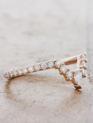 Curved diamond wedding band with pear center