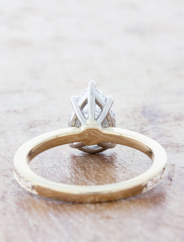 Pear diamond engagement ring with thin pavé band