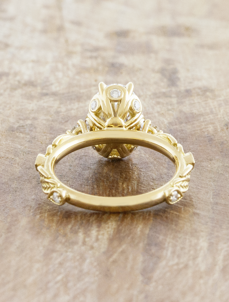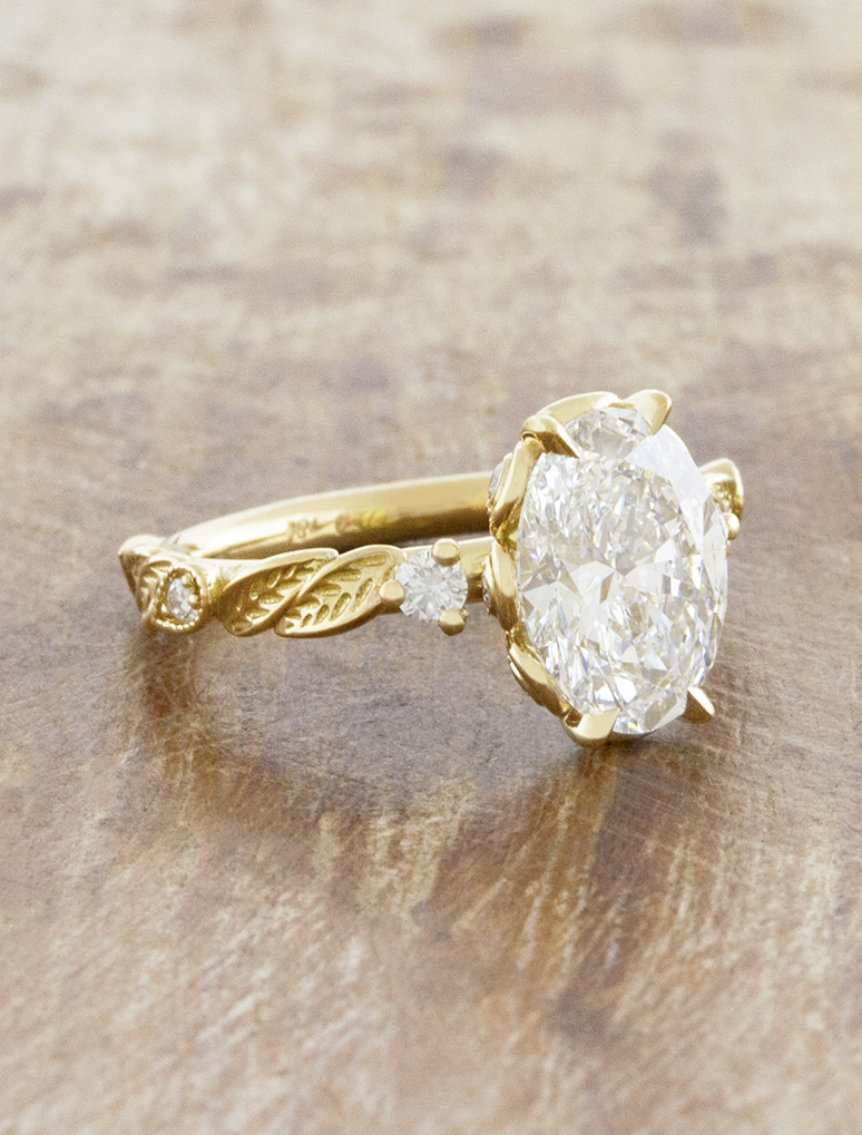 Drop-down diamond options represent our recommended grade, which maximizes size for value, while maintaining eye-perfect clarity and giving you a colorless look.  For other diamond options, see our Shop Diamonds tab or speak to one of our design consultants.  This design can also be made with other stone shapes.