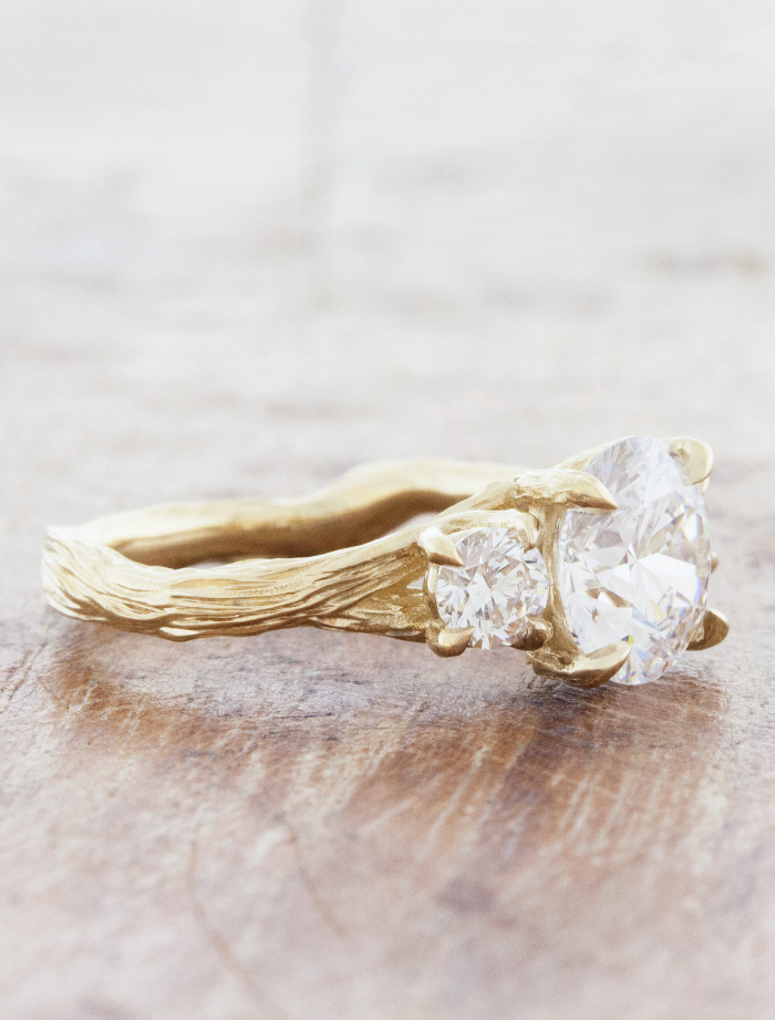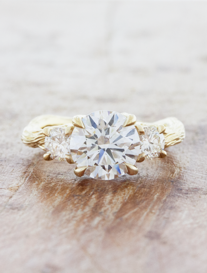 Discover the raw elegance of Mother Nature with our beautifully crafted Luca engagement ring, showcasing a unique bark texture and a stunning trio of lab grown round cut diamonds. This authentic masterpiece is designed to stir your soul, revealing the organic magic and mystery woven into nature's intricate patterns.