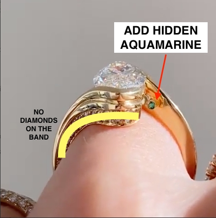 Design Details: Add one hidden aquamarine stone on the band, like the photo