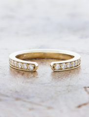 Meli is a cuff wedding band with some vintage flair. White diamonds (0.2tcw) run halfway around the band and the milgrain border is just oh-so special.  Width of band is approximately 2.5mm.  Handmade in NYC.