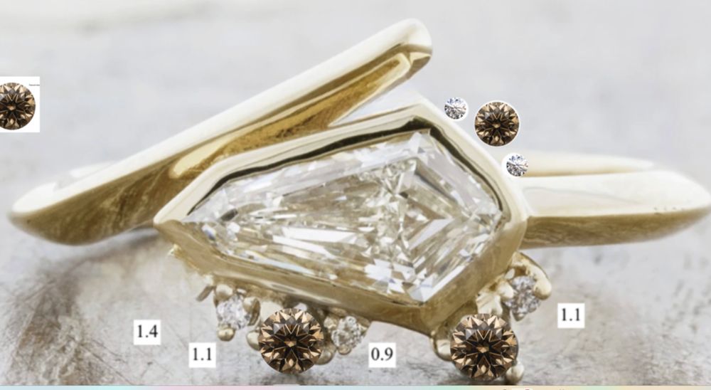 Design Details: -additional stones (brown and colorless diamond melee) as shown in the attached photo.