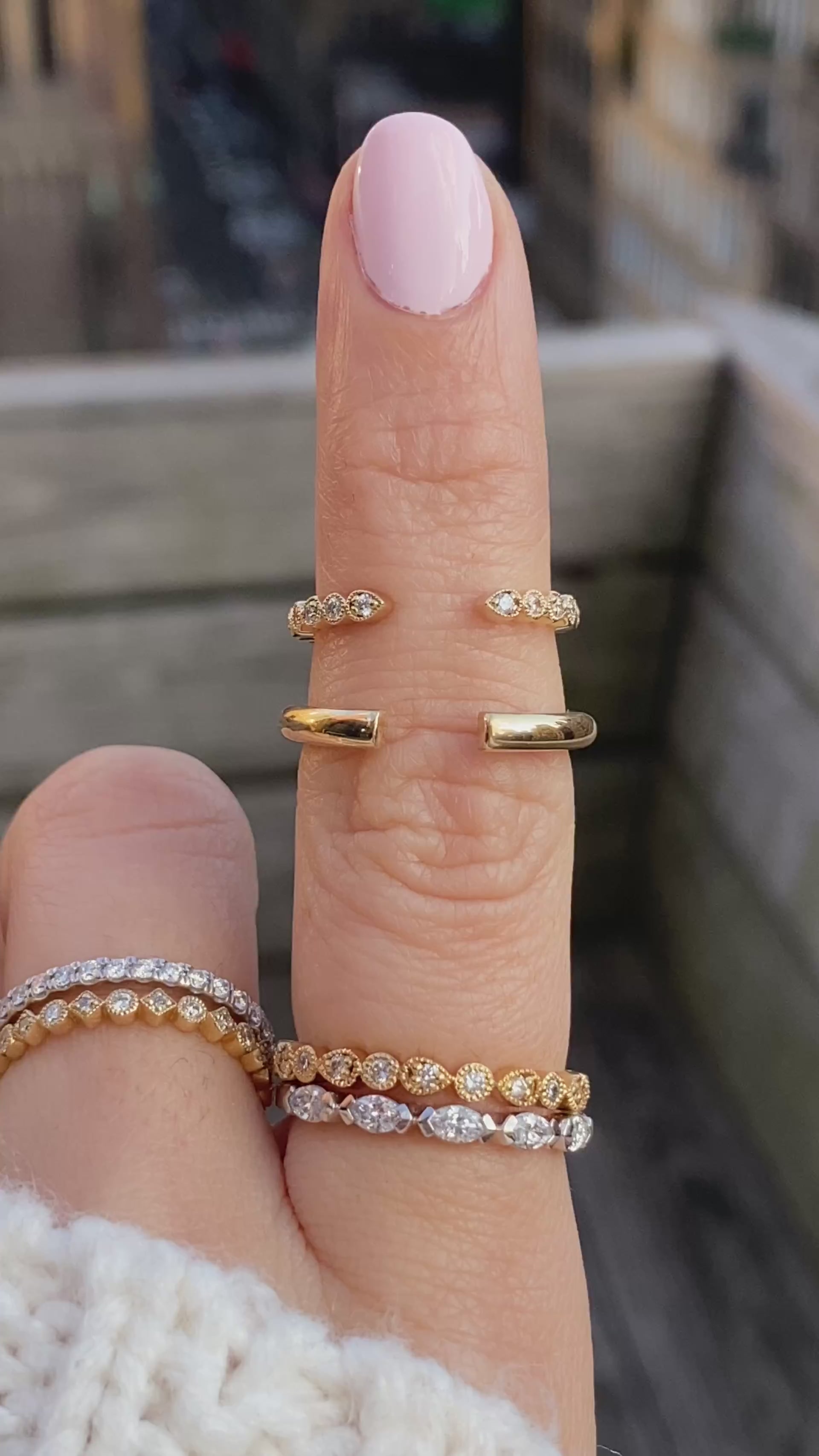 Nyan is classic, timeless, and perfectly stackable!  Her cuff design allows for seamless stacking with any engagement ring, especially our Lucille.