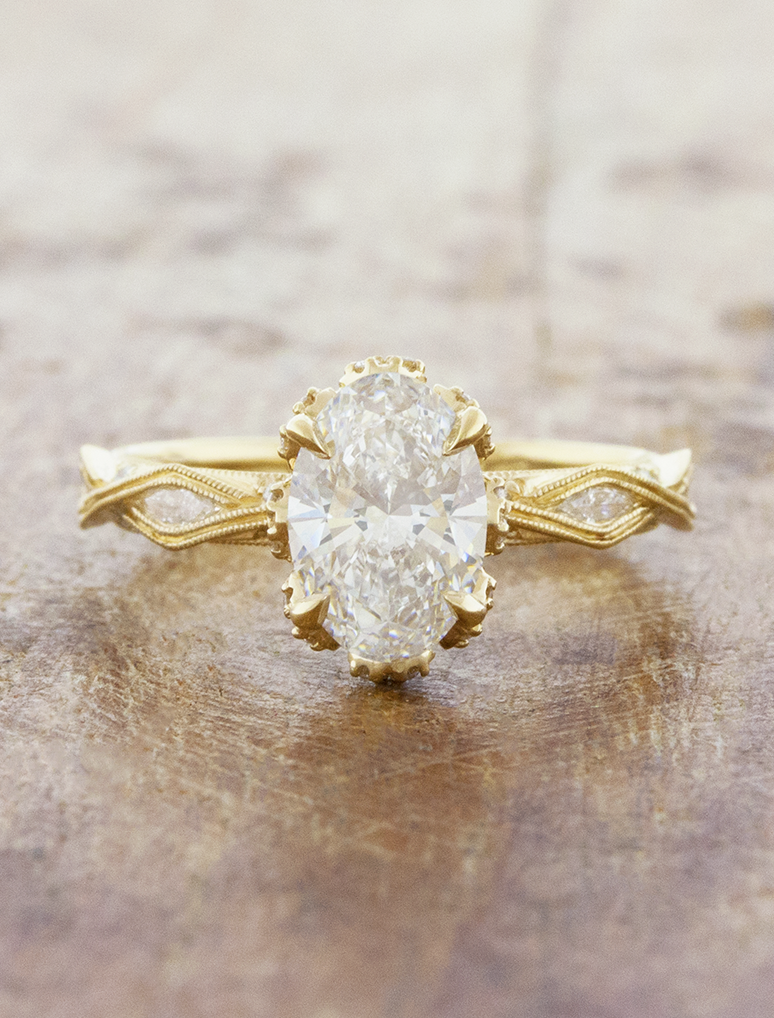 Drop-down diamond options represent our recommended grade, which maximizes size for value, while maintaining eye-perfect clarity and giving you a colorless look.  For other diamond options, see our Shop Diamonds tab or speak to one of our design consultants.  This design can also be made with other stone shapes.