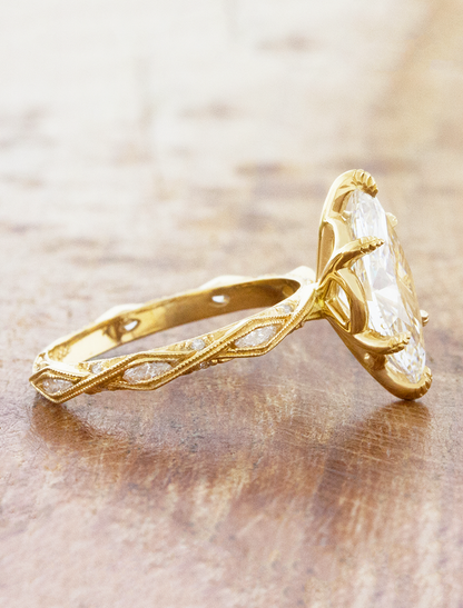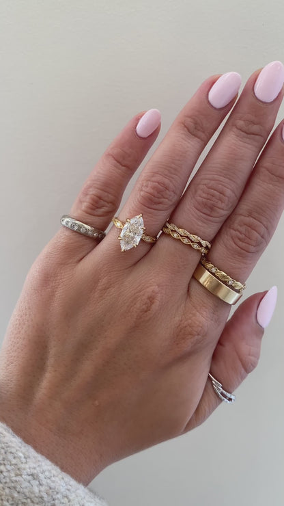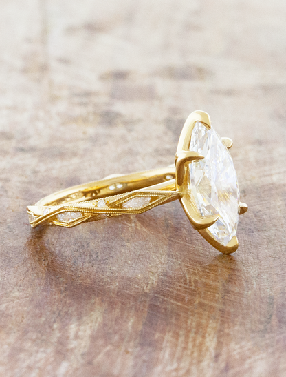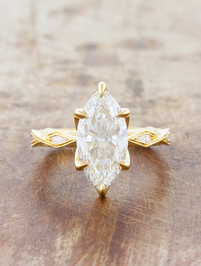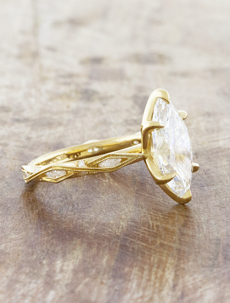 Vintage-inspired marquise engagement ring