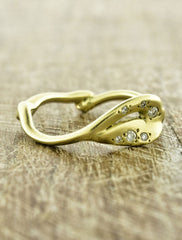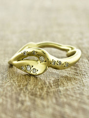 Named after the goddess of women and marriage, the Hera engagement band is significant on multiple levels.  This sculptural beauty curves towards the center to form an abstraction of the Eye of Horus- a symbol of protection and royalty.  Ideal for the woman who desires a unique + artistic engagement ring, sans the traditional pronounced center stone.  Available in 18k recycled gold (yellow, rose, or white) and sprinkled with diamonds.  Width of band at thinnest section is 1.5mm and widest section is 7.0mm.  Handmade in NYC.