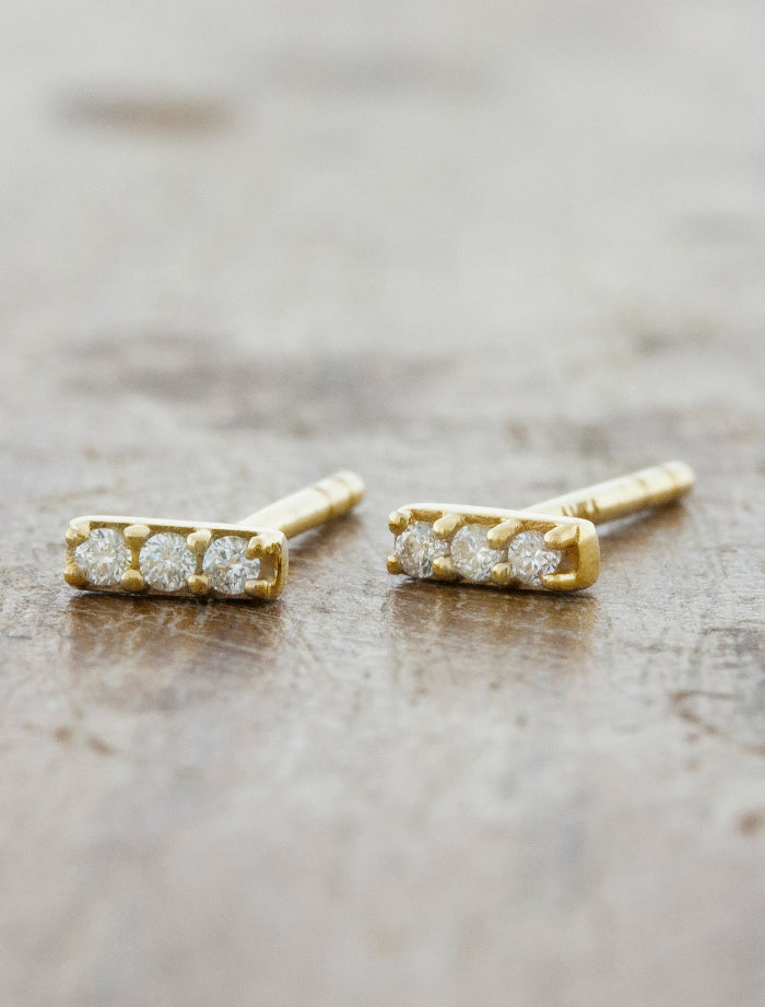 Reesa features beautiful round-shaped diamonds on a line position. One can't go wrong with these studs and their clean elegant lines. Sold as a pair or a single stud.