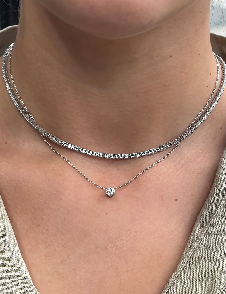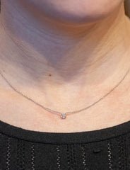 Rosemary is perfect for that little twinkle on your wedding day or that extra I love you on your anniversary. She is handcrafted with 16" of cable chain in gold or platinum, and set in 4 prongs with your choice of natural or lab grown diamond.  Hand made in NYC.