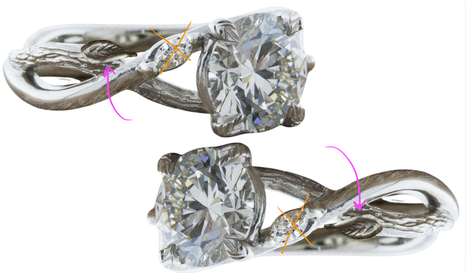 Design Details: Design without side stones. Incorporate leaf detail on either side of the band (ref image).