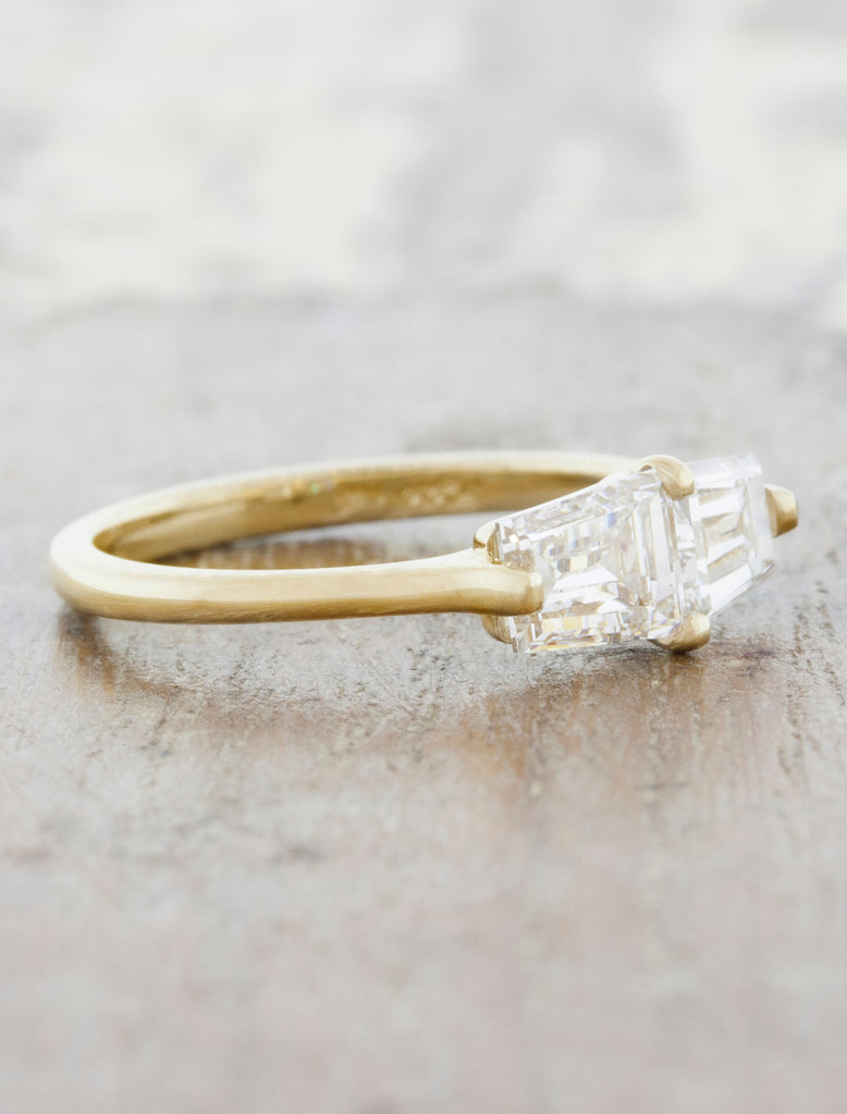 Savannah is our two-stone baguette wedding band.  A pair of custom-cut lab grown tapered baguettes come together at its center, symbolizing the union of marriage.  The Savannah is ideal for someone who prefers a modern look with unique style. The diamonds in this piece are 1 carat total weight.