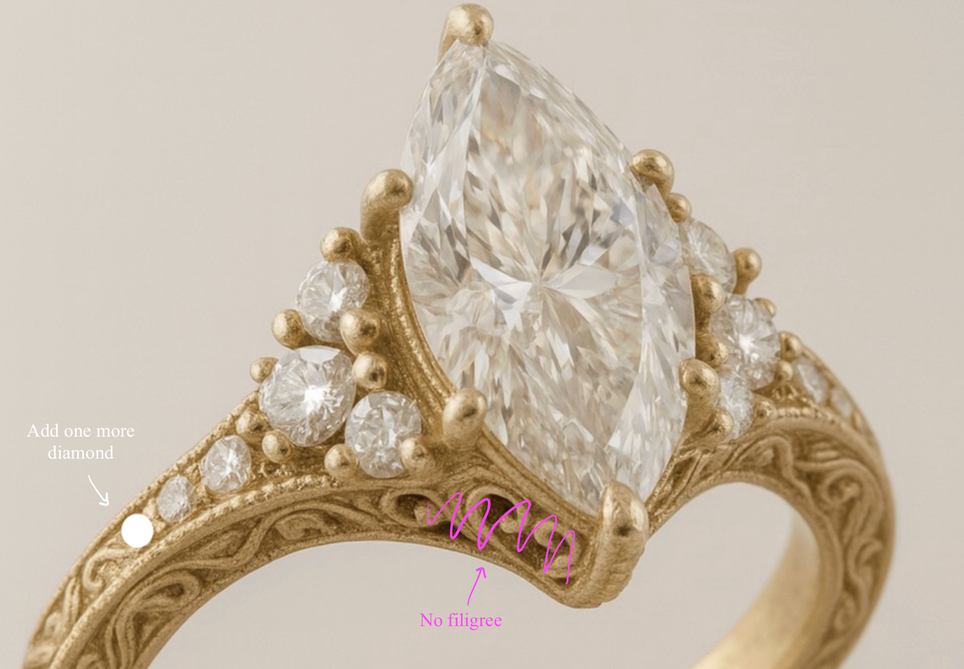 We take great pride in our craftsmanship and often feature our custom creations in marketing, promotional, and sales materials. By commissioning a custom piece, you acknowledge and agree that your design may be photographed, and potentially offered for commission as part of our collection or as a made-to-order item.