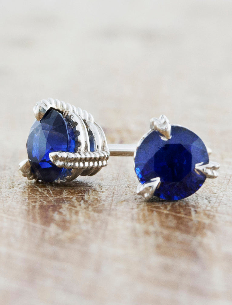 Twinkles are always a good idea. Gift these beautiful stud earrings and let them brighten your smile. This pair of beauties can be set with a pair of round brilliant diamonds or sapphires, in the size of your choosing, using an eco-friendly recycled metal. Timeless and classic, these studs make the perfect gift for any occasion or no occasion at all.