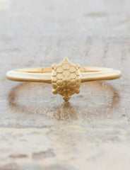Turtle was designed to be an anniversary ring, and the client wanted a turtle because it symbolizes patience and longevity; both essential ingredients in a marriage. Available in your choice of recycled metal.