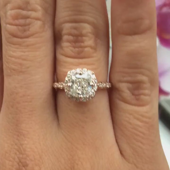 Pretty Pink looker.  Our Ritu is not what we imagined her to be, but much much more.  Our client wanted something unique with a touch of vintage flare - that is Ritu wrapped into one.   She has a brilliant conflict free cushion cut diamond at her center that we sourced for our client who knew exactly what would make his partner's heart melt - and boy, did it ever.
