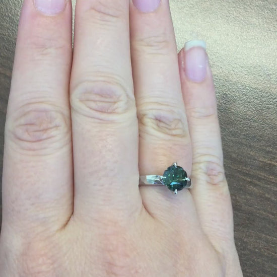 Balyrix is sculptural and an ode to the classic solitaire engagement ring with a nature inspired twist.  It features a hammered band and a rare Montana sapphire that we sourced especially for our client
