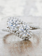 Our client wanted a piece that was organic and nature-inspired with a loving hug around the two center stones.  We created Gianna - a design that wraps its sweet caressing arms around the beauty of not just one but two round, white diamonds.  It's the endless circle of love.