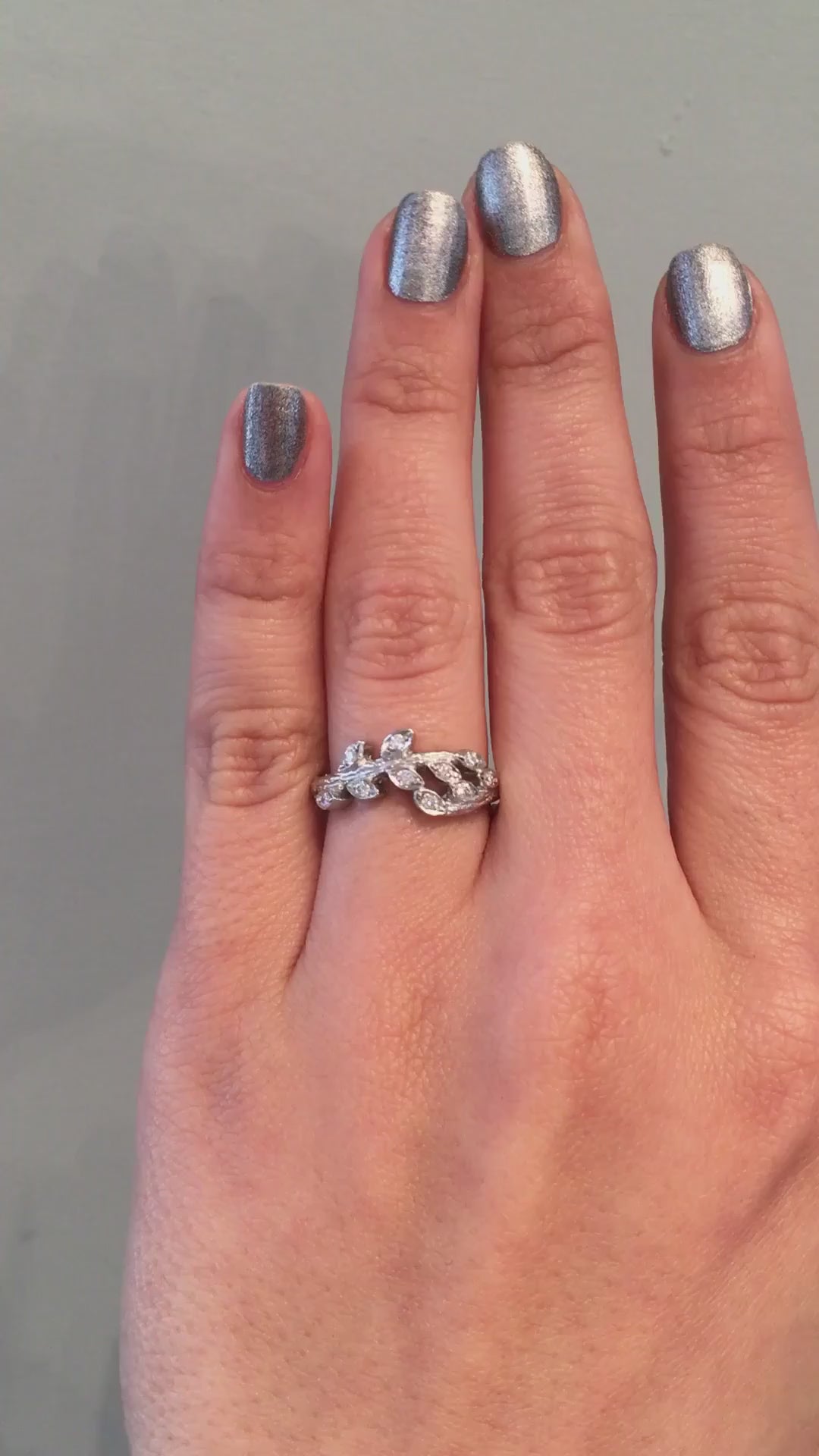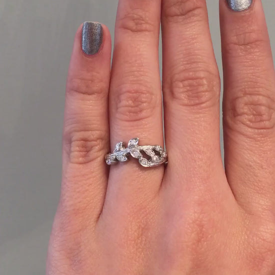 The bark textured, wave-like contours of the Demi represent eternal love, despite all of its unexpected twists and turns. She is the perfect marriage between the earth and sea - the trees and the ocean.  Pairs beautifully with the Aurora and Laurel engagement rings.  Handmade in NYC.