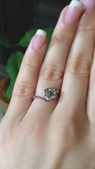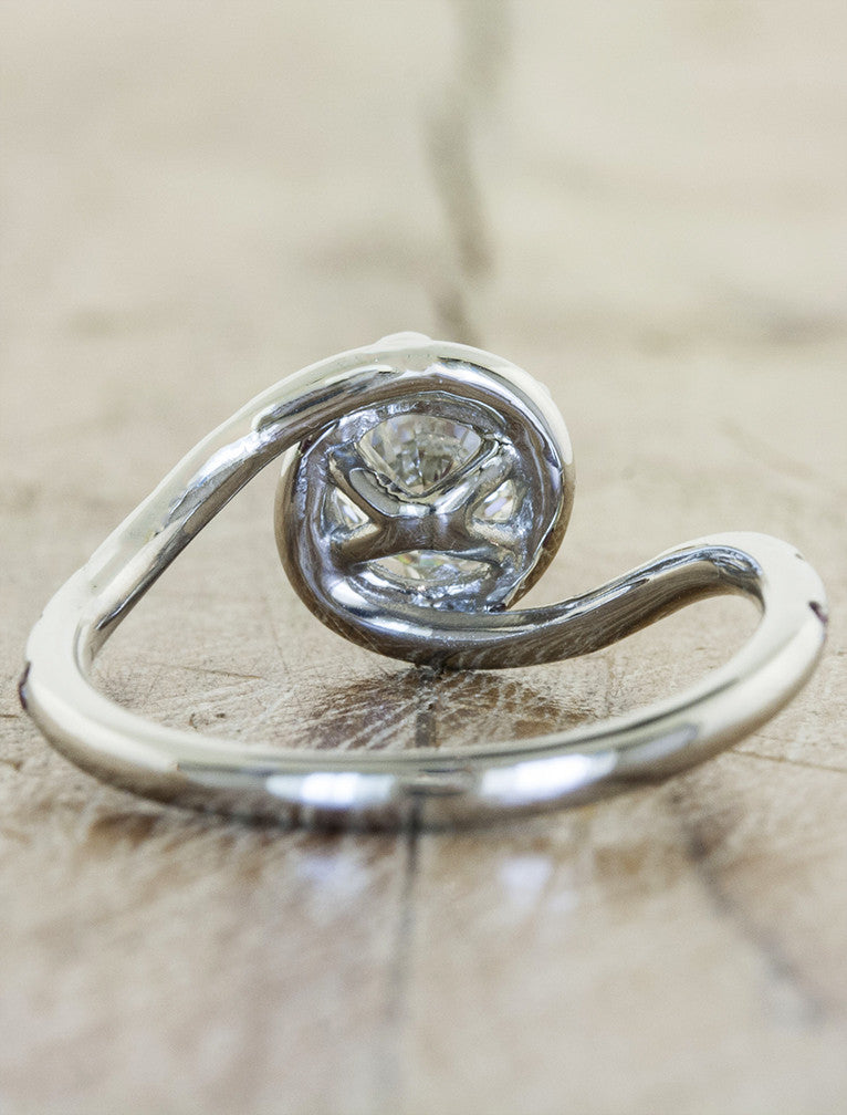 Our client wanted a piece that was organic and nature-inspired with a loving hug around the center stone.  We made him the Meera- a design that wraps its sweet caressing arms around the beauty of a round, white diamond.  The rubies - representing the strong color of love -  help make this piece all the more special and unique.