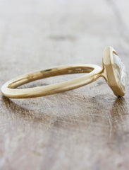 Mettie steals your heart at first glance.  She cradles a free form shaped-natural rose cut, rough diamond  which is nesting in a delicate looking 14k yellow gold bezel trim. Full documentation accompanies this beauty.  She is  a one of a kind - don't let her pass you by. Handmade in NYC.