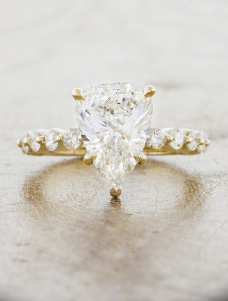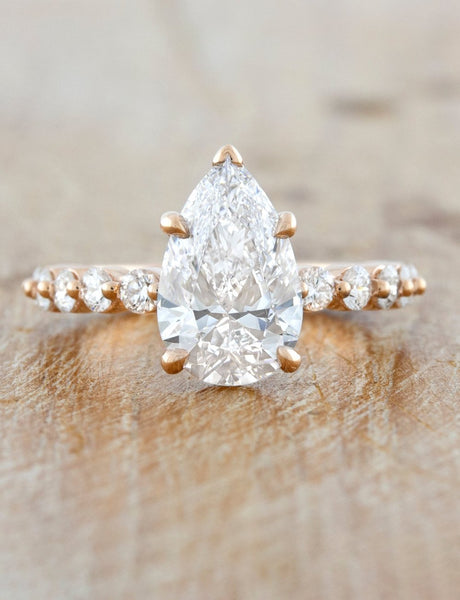 Capella exudes bold elegance with its round diamond-studded band, designed to deliver a dazzling, blingy effect. At the heart of this statement piece sits a striking pear diamond in a timeless solitaire setting, commanding attention and admiration.