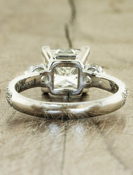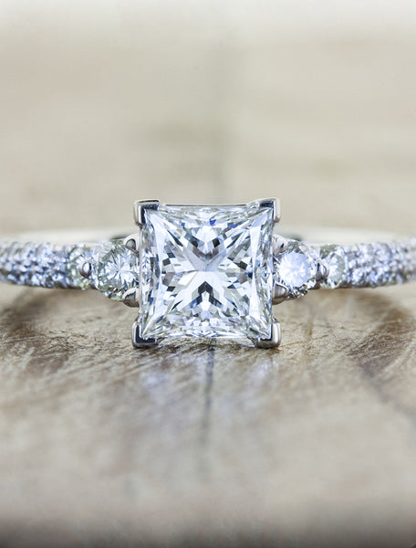 The Nally will leave you "Star" struck.  She is covered in diamond accents, and at her core, you will find three fabulous stones. The most impressive being a 2.50ct princess cut diamond that sits in the center. You can't help but stare and wish upon this shooting star.