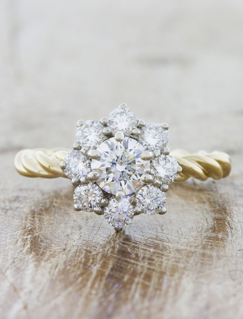 Vintage inspired split band halo engagement ring