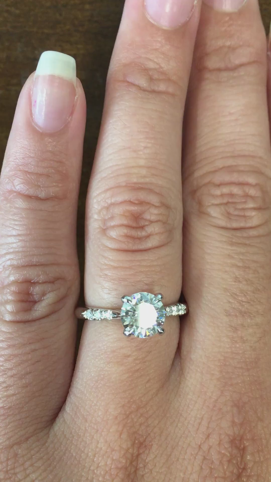 Drop-down diamond options represent our recommended grade, which maximizes size for value, while maintaining eye-perfect clarity and giving you a colorless look.  For other diamond options, see our Shop Diamonds tab or speak to one of our design consultants.  This design can also be made with other stone shapes.