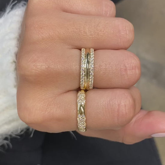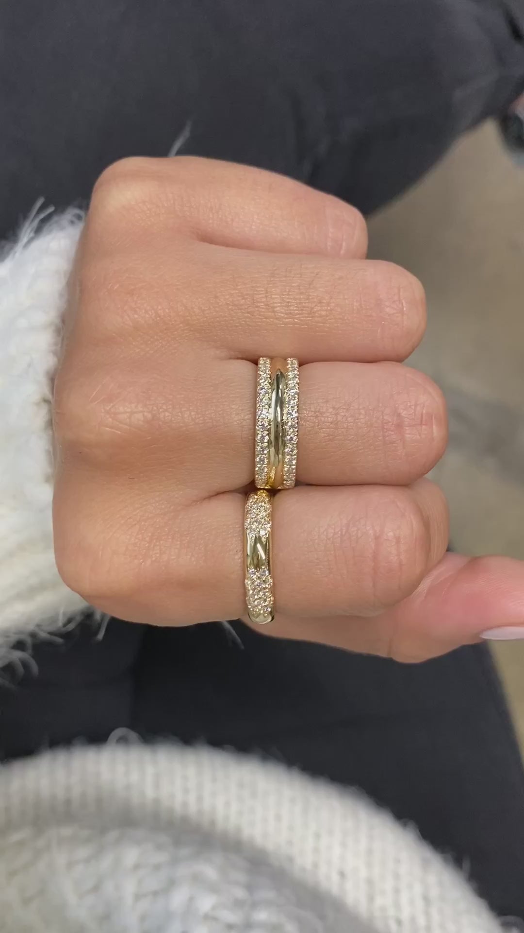 The 6mm Lydia is one of those pieces that simply oozes old world charm.   She is sophisticated with just a little POP! POP! along on the edge.   The conflict free round diamonds that make a statement and keep things classy running half of the way on this recycled 14k yellow gold band add just the right amount of light to the piece. Handmade in NYC.