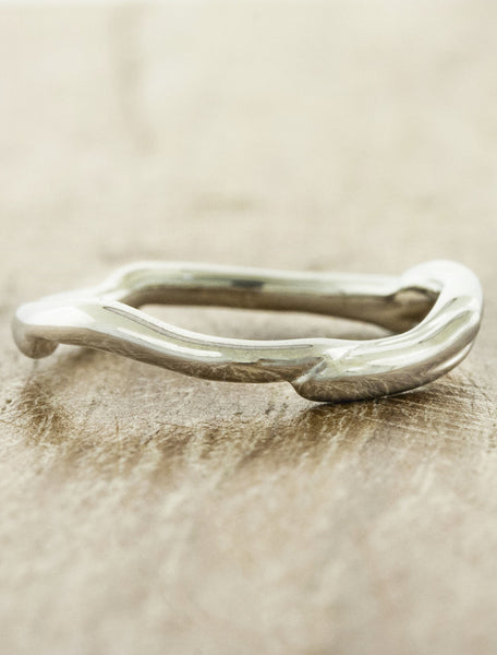Like being in an enchanted forest - the Vine - No Diamonds will make you feel the magic of nature.  This piece combines sculpture and symbolism.  Featuring a hand made 2mm band symbolizing the twists and turns - the ups and downs - of two paths that have decided to come together and share one destiny. She is Daya's Flush fitting wedding band.  Also see Vine- Diamonds and Vine w/ Bark Texture. Handmade in NYC.