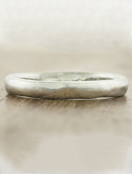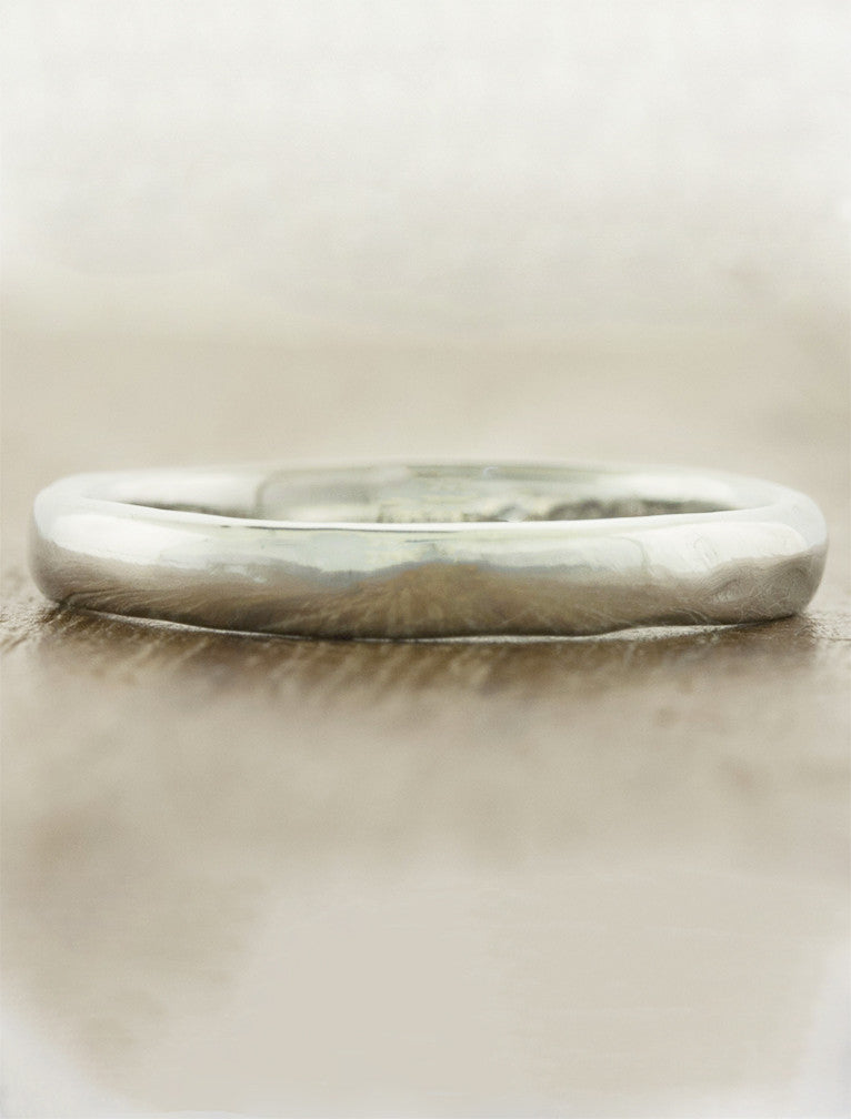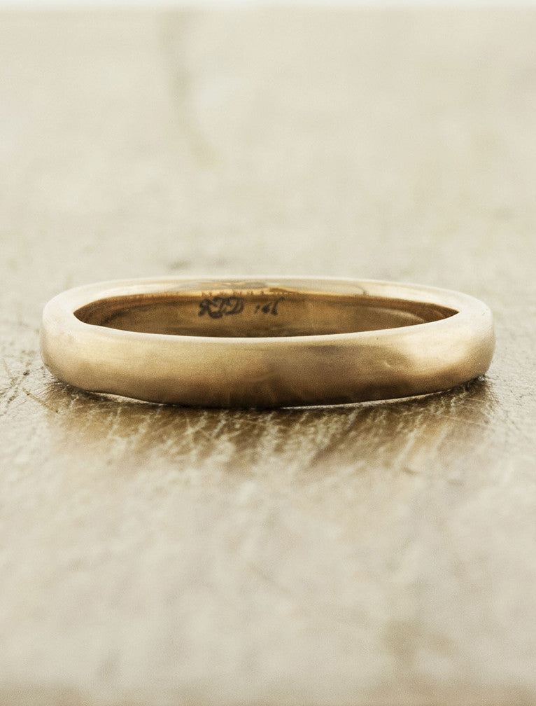 The Tadge is a subtly, cool wedding band that is hand-textured, with each curve and carve working together to create a wondrous style.