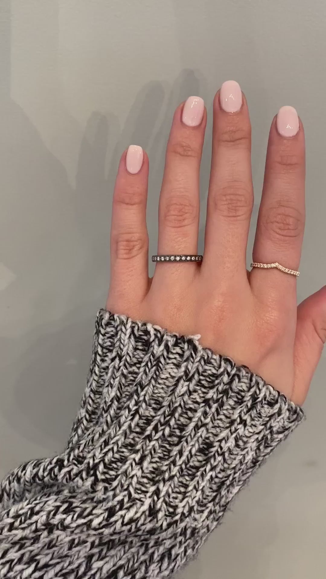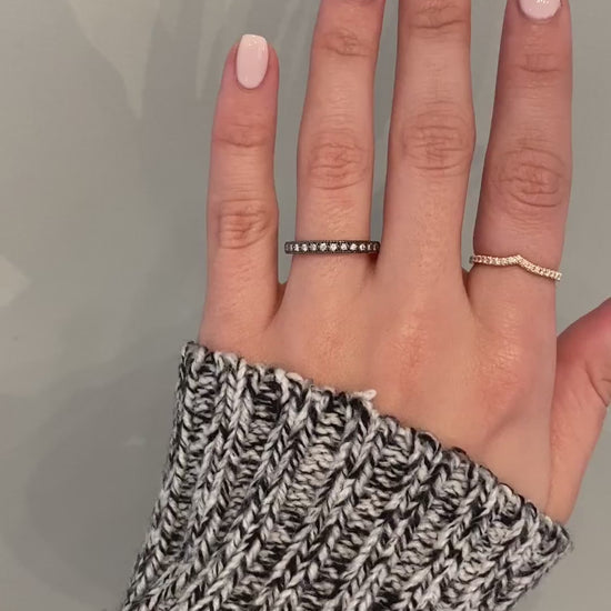 The features of Brini's sparkling diamonds against the dark black metal running halfway around the band are nothing but extraordinary.  Pairs wonderfully with the Theresa, Evelyn and Baretta
