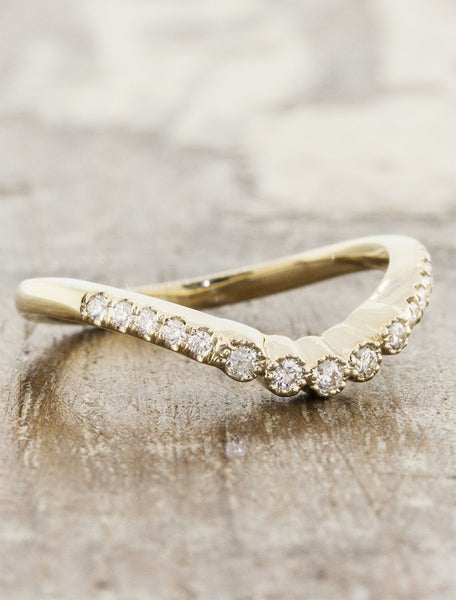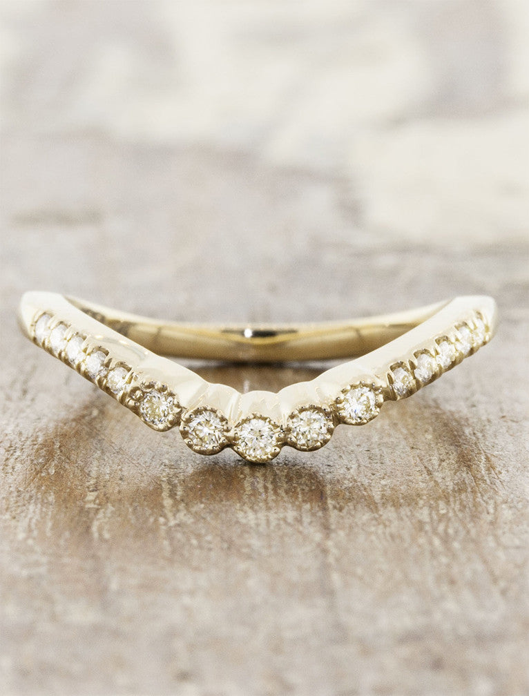 The features of our Cindy will win you over.  She is sweet and perfect for someone looking for just a touch of dazzle.  She is inspired by our Elza and is the perfect companion for our Kalyssa engagement ring.  Handmade in NYC.