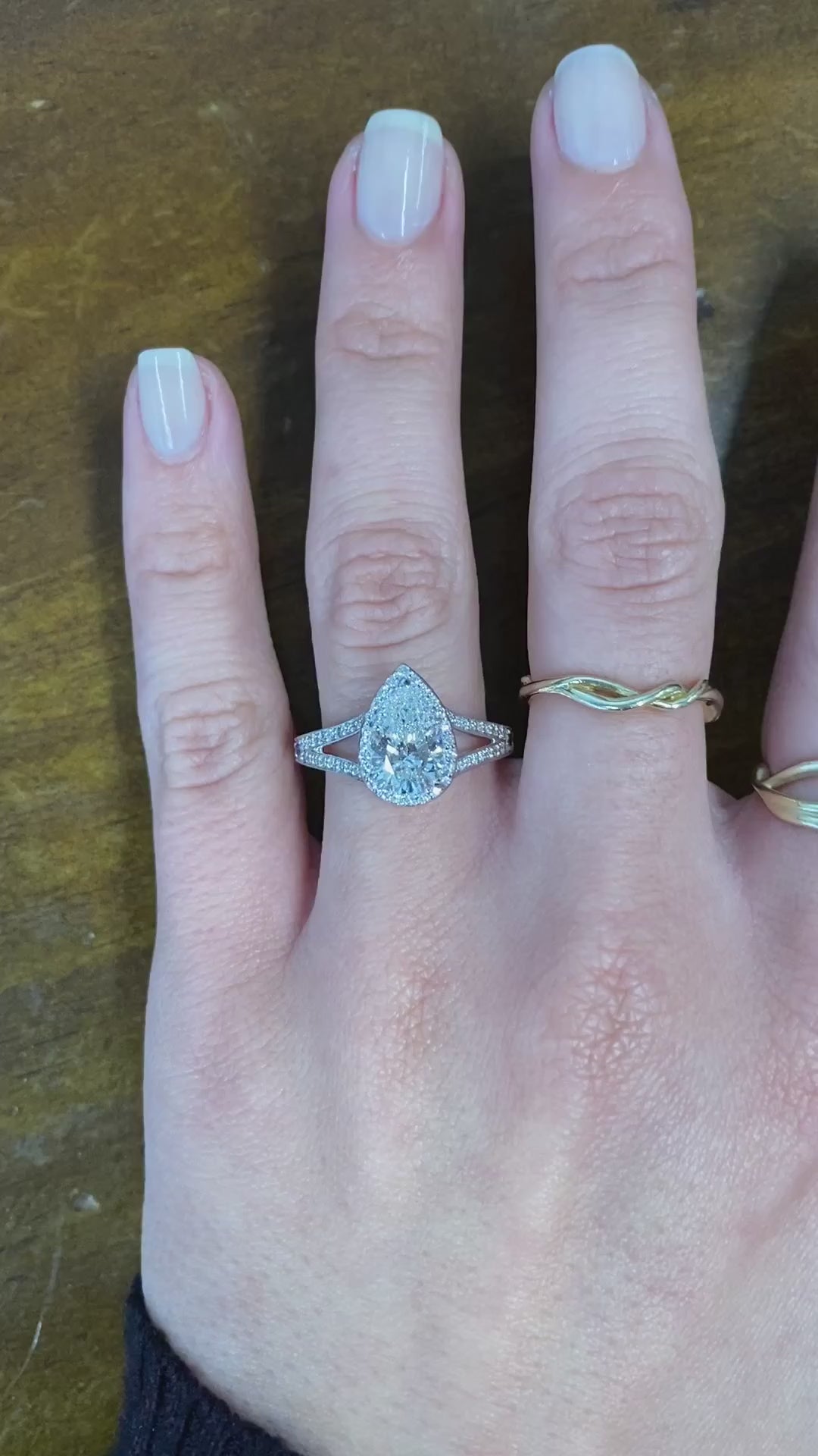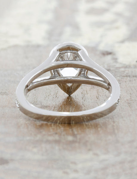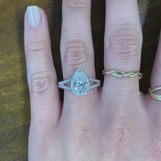 Halo pear diamond split shank ring