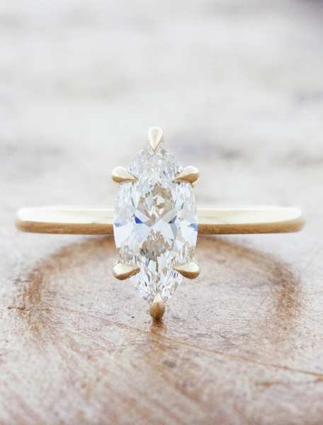 Sleek, chic, and minimal- that's the Zilli! Her fabulous marquise shaped diamond is the center of attention atop a the minimalist band. A sprinkle of diamonds along the basket adds the perfect touch of extra sparkle.