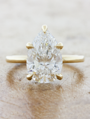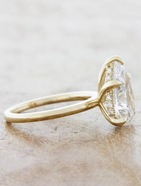 Pear diamond solitaire engagement ring with hidden halo